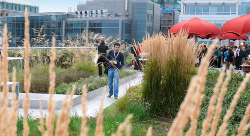 Además de proporcionar un espacio vital adicional, la cubierta verde tiene otras muchas ventajas ecológicas y económicas, como la prolongación de la vida útil de la cubierta, la reducción del ruido y la contaminación, la retención de agua, el ahorro energético o la mejora del clima y del paisaje urbano.