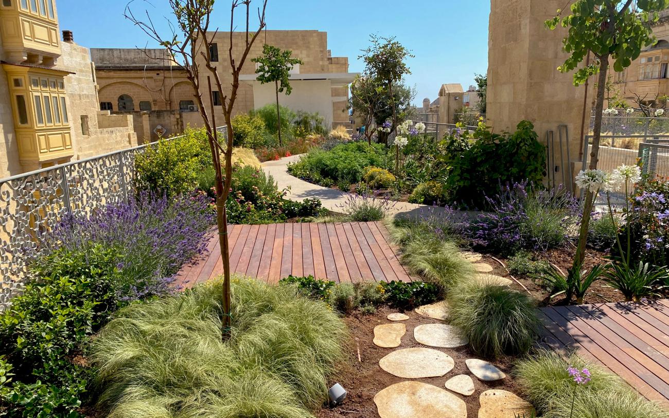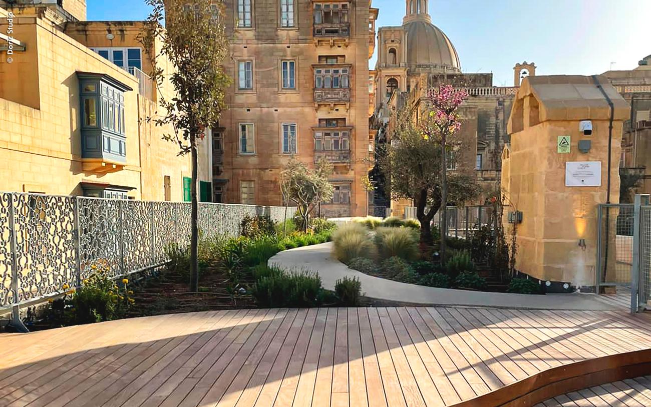 El Clúster de Diseño de La Valeta ofrece un paraíso de jardines en la azotea con un telón de fondo histórico que está abierto al público.